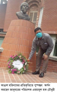 নেক্টনিউজ প্রতিবেদক, সাইফুল ইসলাম, ভেড়ামারা (কুষ্টিয়া) : ৫ বৈশাখ, ১৪২৭ বঙ্গাব্দ ( ১৮ এপ্রিল ২০২০ খ্রিস্টাব্দ রোজ শনিবার, গ্রামীণ সাংবাদিকতার পথিকৃত, মহান শিক্ষক,সমাজ সেবক ও সংস্কারক এবং বাউল সাধক কাঙ্গাল হরিনাথ মজুমদার এর ১২৪ তম তিরোধান দিবস। আজ সকালে বাংলাদেশ জাতীয় জাদুঘরের শাখা জাদুঘর কুষ্টিয়ার কুমারখালী উপজেলায় সম্প্রতি প্রতিষ্ঠিত সাংবাদিক কাঙ্গাল হরিনাথ স্মৃতি জাদুঘরে নিয়োজিত সকল স্টাফ এই মহান ব্যাক্তিকে শ্রদ্ধাসহ তার আত্মার শান্তি কামনা করে। এই জাদুঘরের পরিচালক এহসানুল হ চৌধুরী জানান, করোনা ভাইরাসের কারনে সকল অনুষ্টানাদি স্থগিত করা হয়েছে।