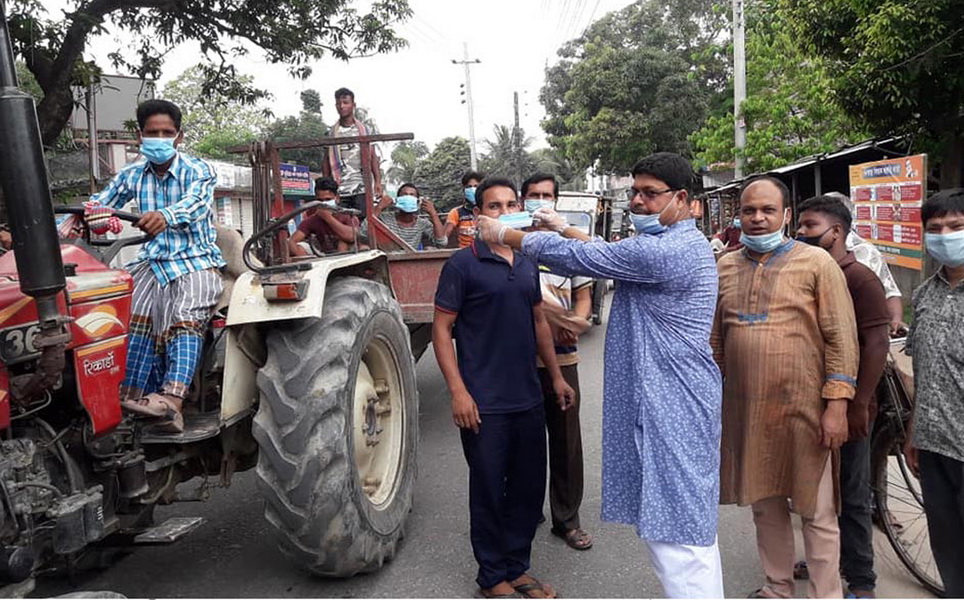 মাক্স বিতরণ করেন বোচাগঞ্জ উপজেলা আওয়ামী লীগের সাধারণ সম্পাদক আফছার আলী, সহ-সভাপতি ও পৌর মেয়র আব্দুস সবুর, মো. জাফরুল্লাহ, আলহাজ্ব আব্দুল মান্নান, যুগ্ম সাধারণ সম্পাদক সুব্রত কুমার অধিকারী, তথ্য ও গবেষনা বিষয়ক সম্পাদক ফিরোজ্জামান কবীর, দপ্তর সম্পাদক এম বিল্লাহ জুয়েল, সহ-দপ্তর সম্পাদক আকতারুজ্জামান সজীব, যুব ও ক্রীড়া সম্পাদক বরুন চন্দ্র সরকার, আওয়ামী লীগ নেতা সাইফুর রহমান, নুরুজ্জামান সোনা প্রমুখ।