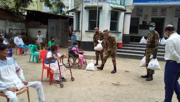 মহামারি করোনা ভাইরাসের কারণে সামাজিক দুরত্ব বজায় রেখে আজ রবিবার দিনাজপুর বুদ্ধি প্রতিবন্ধী ও অটিস্টিক বিদ্যালয়ের প্রতিবন্ধী ৫০ জন গরিব অসহায় ও প্রতিবন্ধী শিশুদের মাঝে খাদ্যসামগ্রী বিতরণ করেন ১৬ পদাতিক ব্রিগেডের অধিনে ৬৬ পদাতিক ডিভিশনের ফোর হর্স ইউনিটের লেফটেনেন্ট আসিফ। খাদ্যসামগ্রী মধ্যে ছিল চাল,ডাল,তেল,আটা,চিনি ও সেমাই।