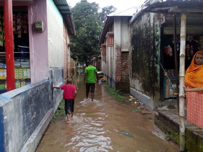 এলাকা সরেজমিনে পরিদর্শনে গেলে রশিদা, বাবুল, খায়রুল ইসলাম ও আরো অনেকে জানান, পানি নিস্কাশন ও ড্রেনেজ ব্যবস্থা না থাকায় এলাকায় জলাবদ্ধতার সৃষ্টি হয়েছে। কোথাও হাঁটু পানি, কোথাও কোমর পানি। এ পানি ঢুকে অধিকাংশ বাড়িতে। ফলে নিম্ন আয়ের মানুষরা রান্না করতে না পেরে অনাহারেই থাকছেন।