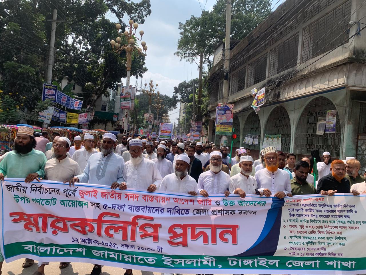 জামায়াতে ইসলামী। রোববার(১২ অক্টোবর) সকালে জেলা প্রশাসক শরীফা হকের মাধ্যমে প্রধান উপদেষ্টার বরাবর স্মারকলিপি দেয়া হয়।