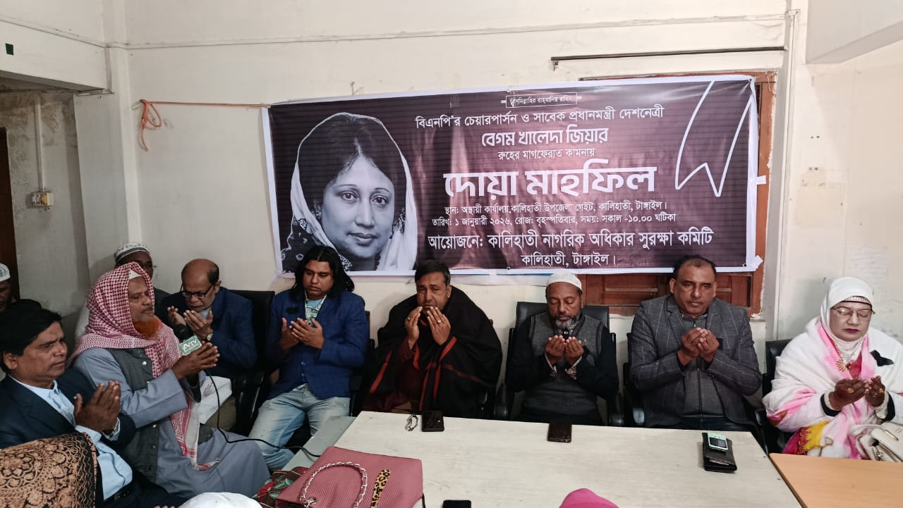 শেষে বেগম খালেদা জিয়ার রুহের মাগফিরাত কামনায় দোয়া মাহফিল পরিচালনা করেন মাওলানা নুরুল ইসলাম।